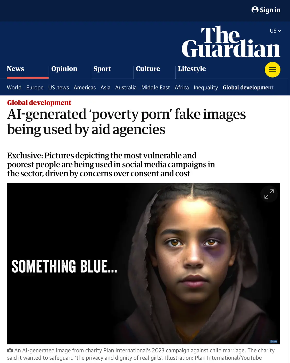 IT之家 10 月 22 日消息,據(jù)英國《衛(wèi)報》20 日報道,AI 生成的極端貧困、兒童以及性暴力幸存者圖像正在大量涌入圖庫網(wǎng)站,并被越來越多的全球衛(wèi)生非政府組織使用,引發(fā)了全球衛(wèi)生專家的廣泛關(guān)注。