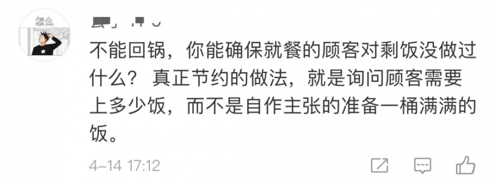 桶裝飯的做法本身就容易造成浪費(fèi)